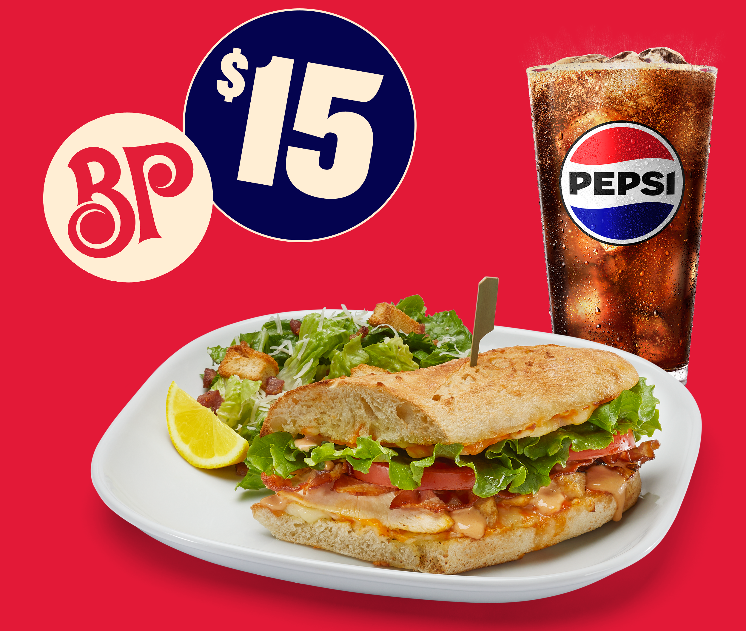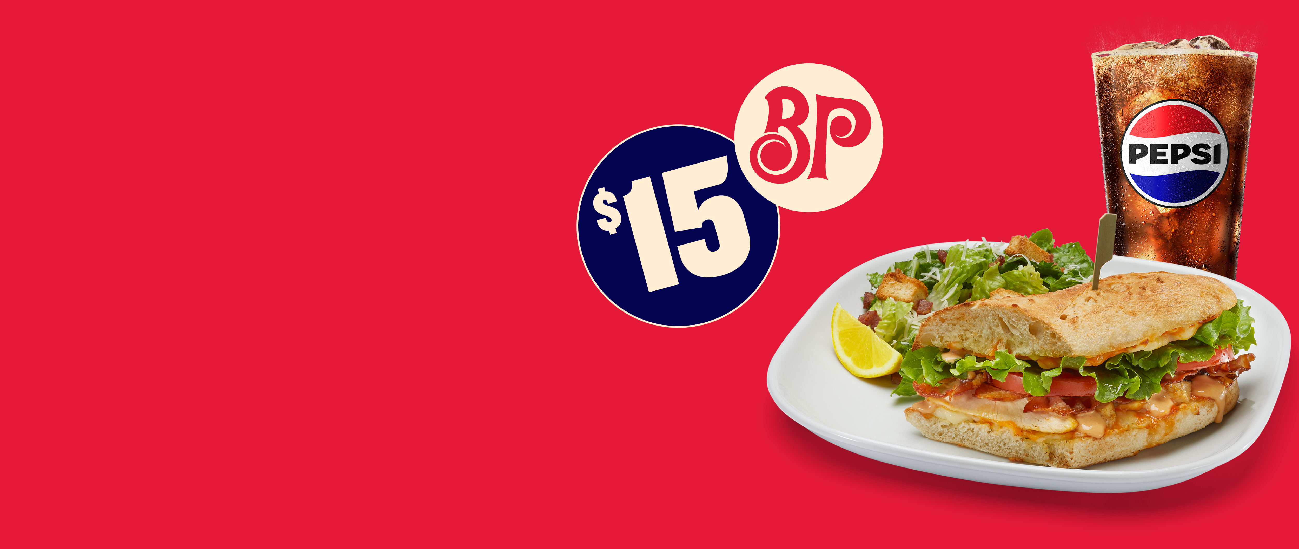 Choose a main, side and drink for only $15, ready in 20 minutes or your next lunch is on us! Whether it's pizza of the day, pasta or sandwiches, our menu is crafted to satisfy all your midday cravings.