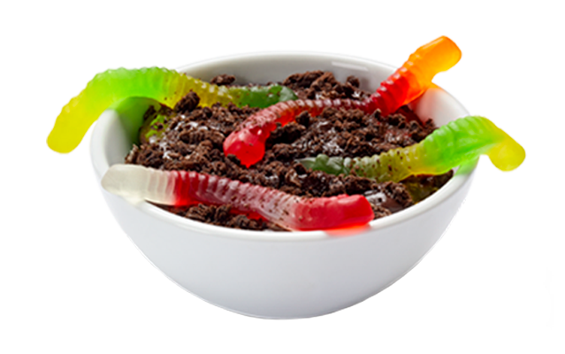 Chocolate pudding topped with Oreo® Cookie Crumbs and squirming with gummy worms!