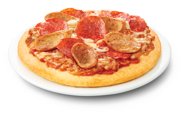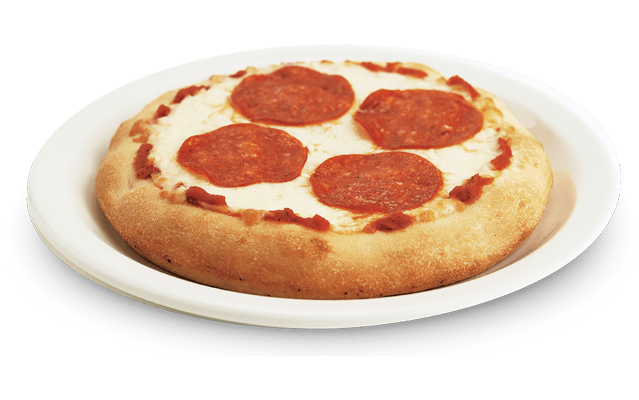The perfect size for a hungry kid. Pizza sauce, pizza mozzarella, and any two toppings you want.