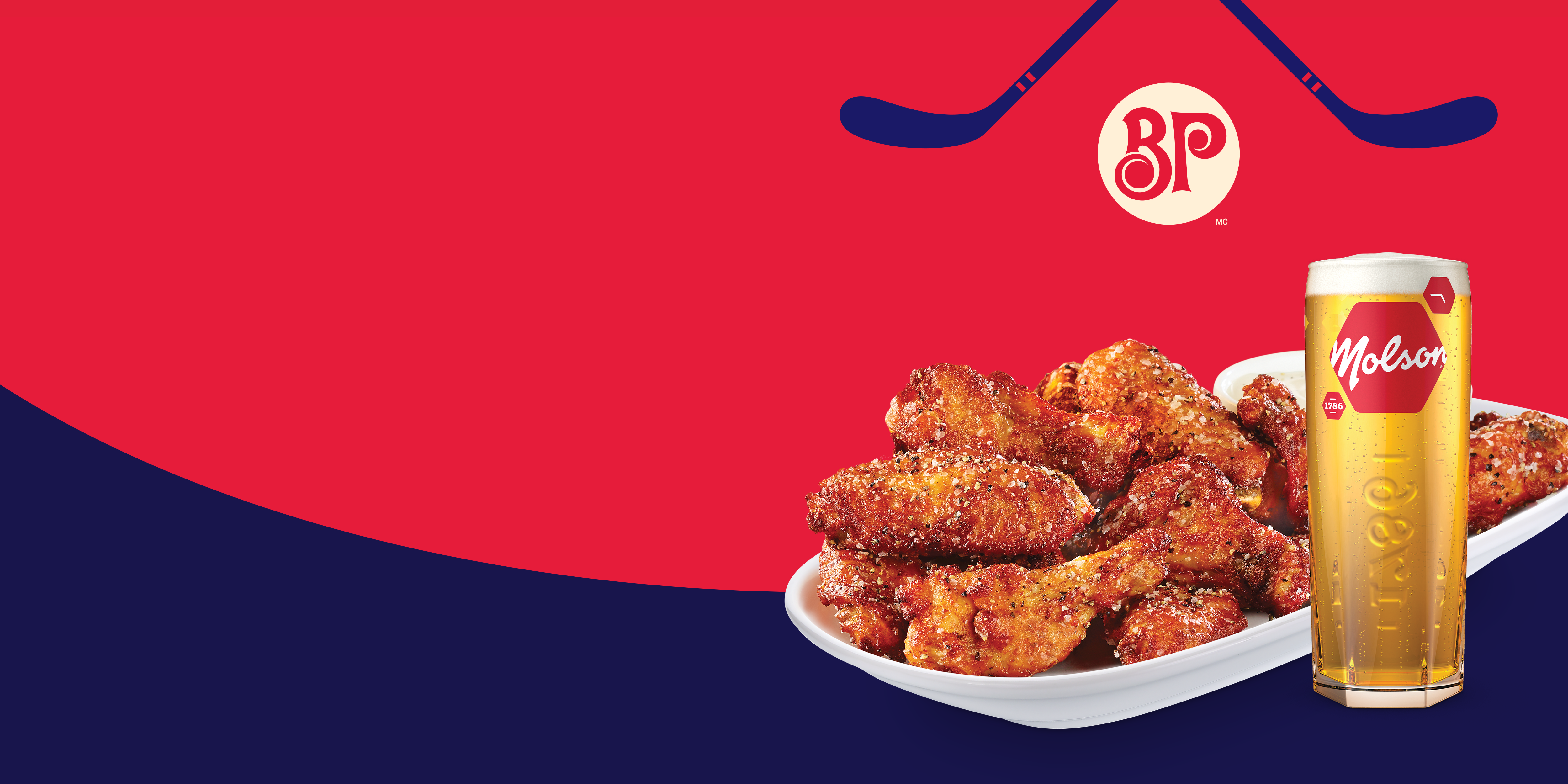 Offer valid during Montreal games only. Wings are $1 each with the purchase of 8 fried or oven-roasted chicken wings (singlesize). Offer valid for dine-in only at participating Quebec locations. Some conditions apply. Cannot be combined with any other promotional offer. No cash value. See restaurant for details.Some conditions apply. Must be legal drinking age. Please enjoy responsibly. Prices do not include applicable taxes and are subject to change without notice.